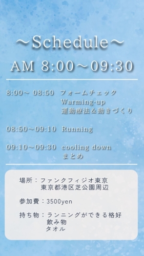 〇持ち物:・ランニングができる格好